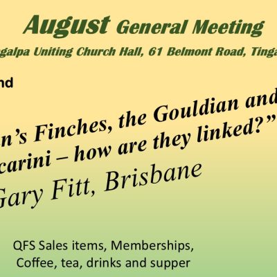 Posted onGuest Speaker: Graham Bull (NSW) Finch Breeding Diets – a natural approach Breeding finches is Graham Bull’s life-long interest, having learned much from his father Gus Bull. During the past […]